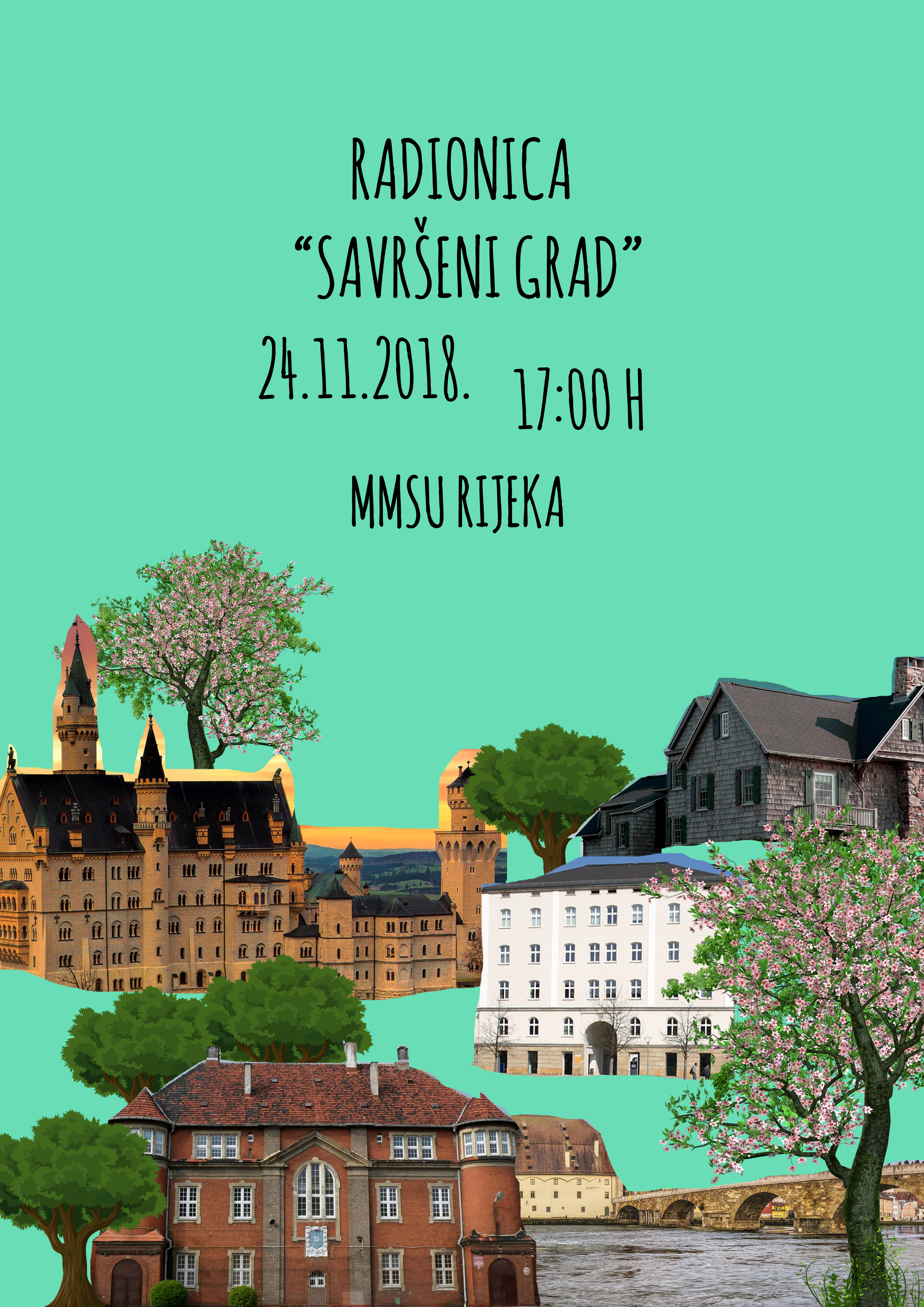 Zajednički rad predstavljat će savršeni grad – tj. savršeno mjesto za život po željama polaznika radionice. Radionica će započeti osvrtom na temu izložbe Bijeg kroz pitanja o tome kako polaznici radionice vide mjesto u koje bi željeli pobjeći, tj. kako izgleda mjesto iz kojeg ne bi željeli pobjeći. Kroz razgovor ćemo doći do odgovora na pitanje kako bi to mjesto izgledalo i na temelju toga napraviti zajednički rad.