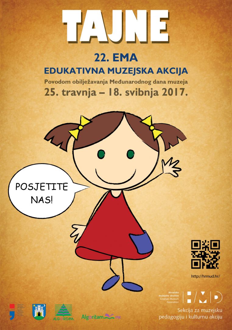 Tajne, 22. EMA – edukativna muzejska akcija u organizaciji Sekcije za muzejsku pedagogiju Hrvatskog muzejskog društva održava se od 25. travnja do 18. svibnja 2017. u muzejima diljem Hrvatske povodom Međunarodnog dana muzeja 18. svibnja.