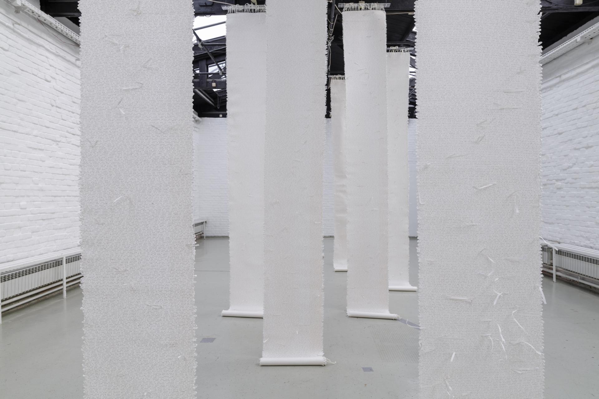 Sama tehnika izrade – pripremanje kilometara bijelih traka rezanjem u uništivaču za dokumente, ispisivanje teksta Krležinog romana na trake širine 0,8 mm te njihovo tkanje u nove dokumente – referira se na način Krležina mijenjanja i prekrajanja književnog teksta: poznato je da su među pojedinim izdanjima Zastava bile značajne gramatičke, sintaktičke, stilske i jezične razlike.