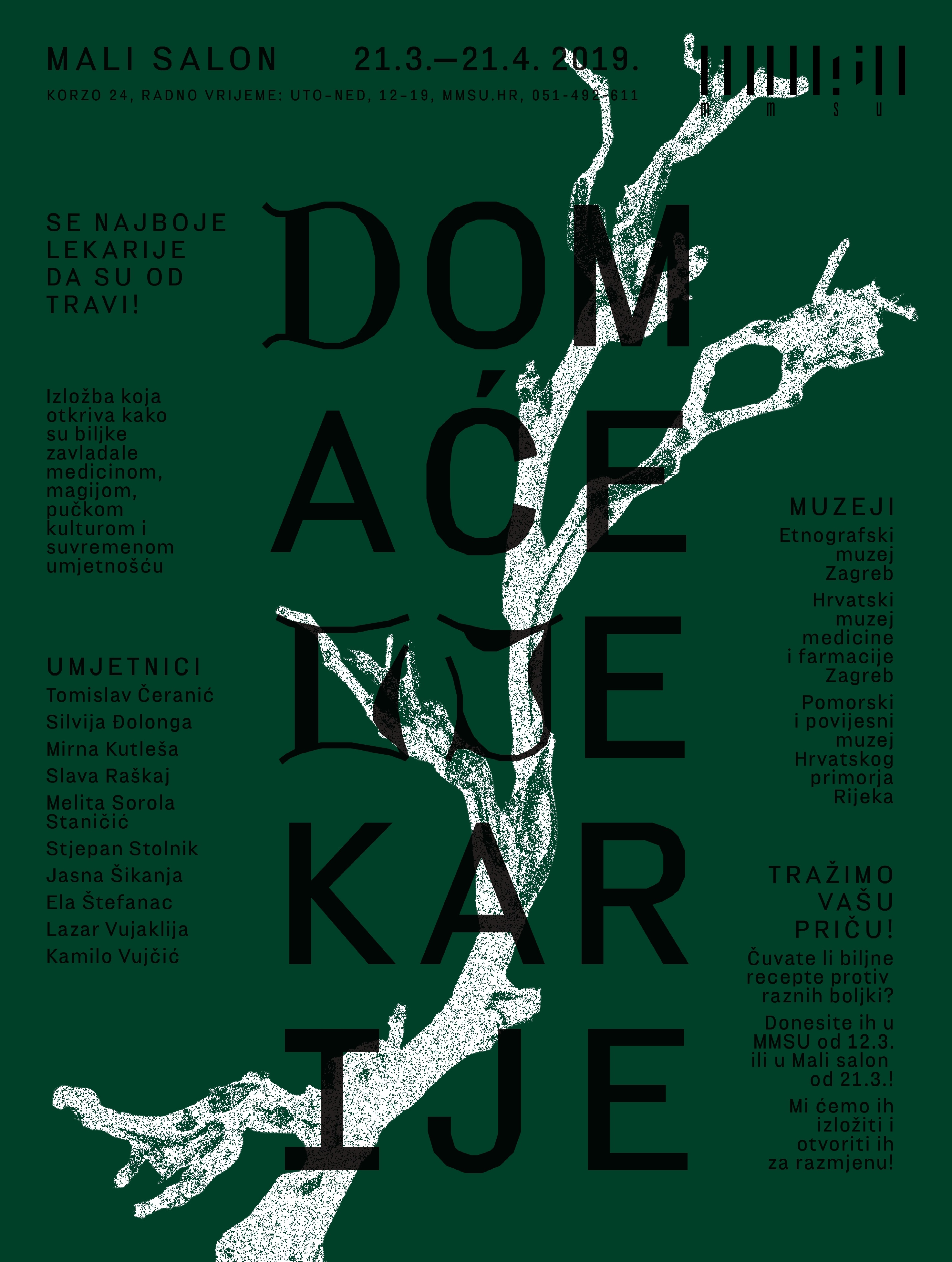 Colorful and fragmentary, the exhibition combines works of art from home turf with ethnographic, cultural and historical material. It reflects on the world of plants in the context of customs and beliefs, but also as an aesthetic inspiration and means of cognition. The possibility of gaining insight into what lies at both ends of reason has always been an issue for humans, who have attempted in various ways to fathom the unreachable with, an aid of imagination, superstition, mirage… Scientific discoveries of modern times have, to a large extent, dispelled the inexplicable; with their rational precision and methods of testing, they have shed light on the mysteries of nature and organic world.