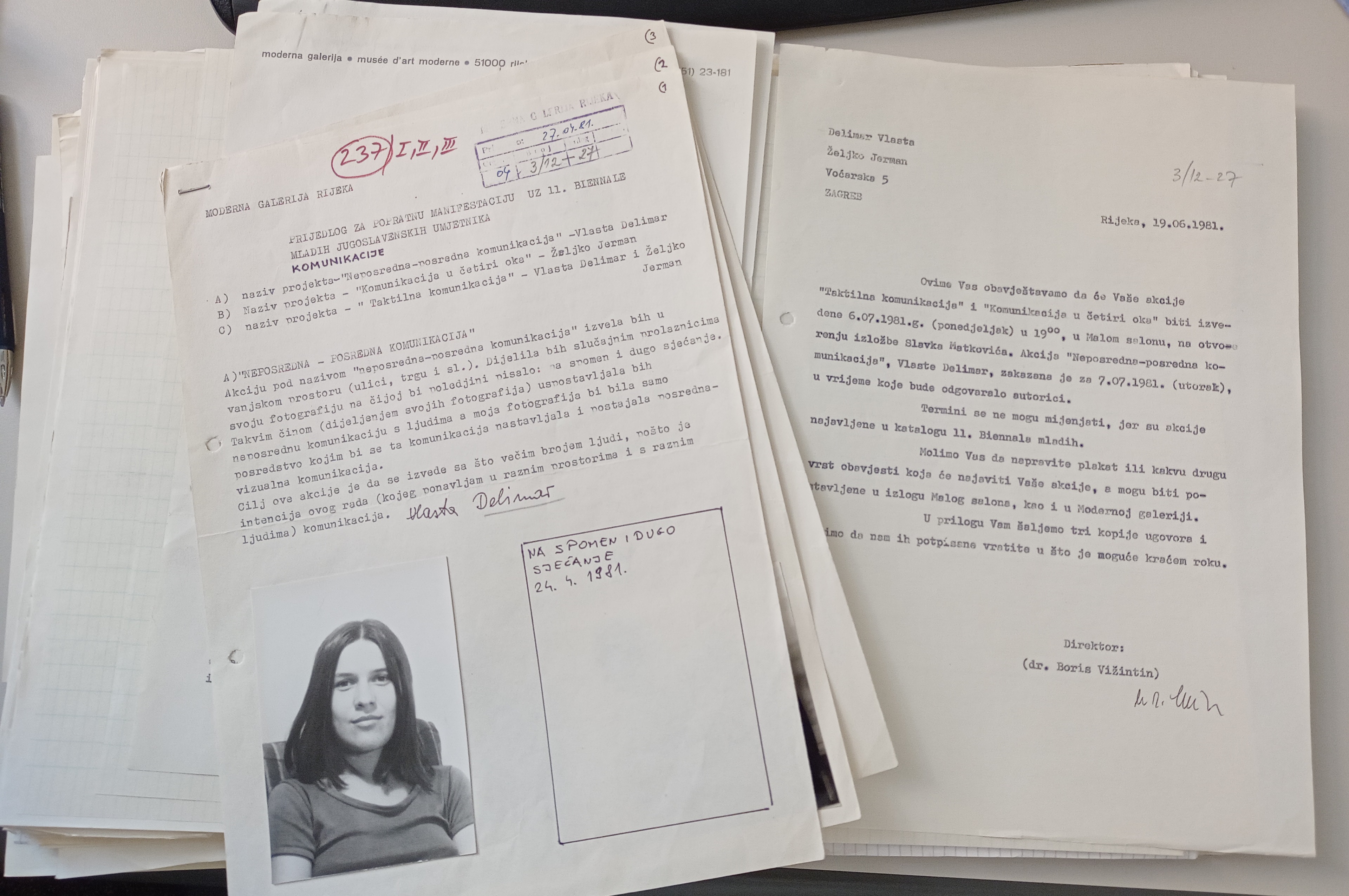 – Delimar, Vlasta; Jerman, Željko, Prijedlog za popratnu manifestaciju uz 11. Biennale mladih jugoslavenskih umjetnika, 1981., spis br. 3/12–27/81.