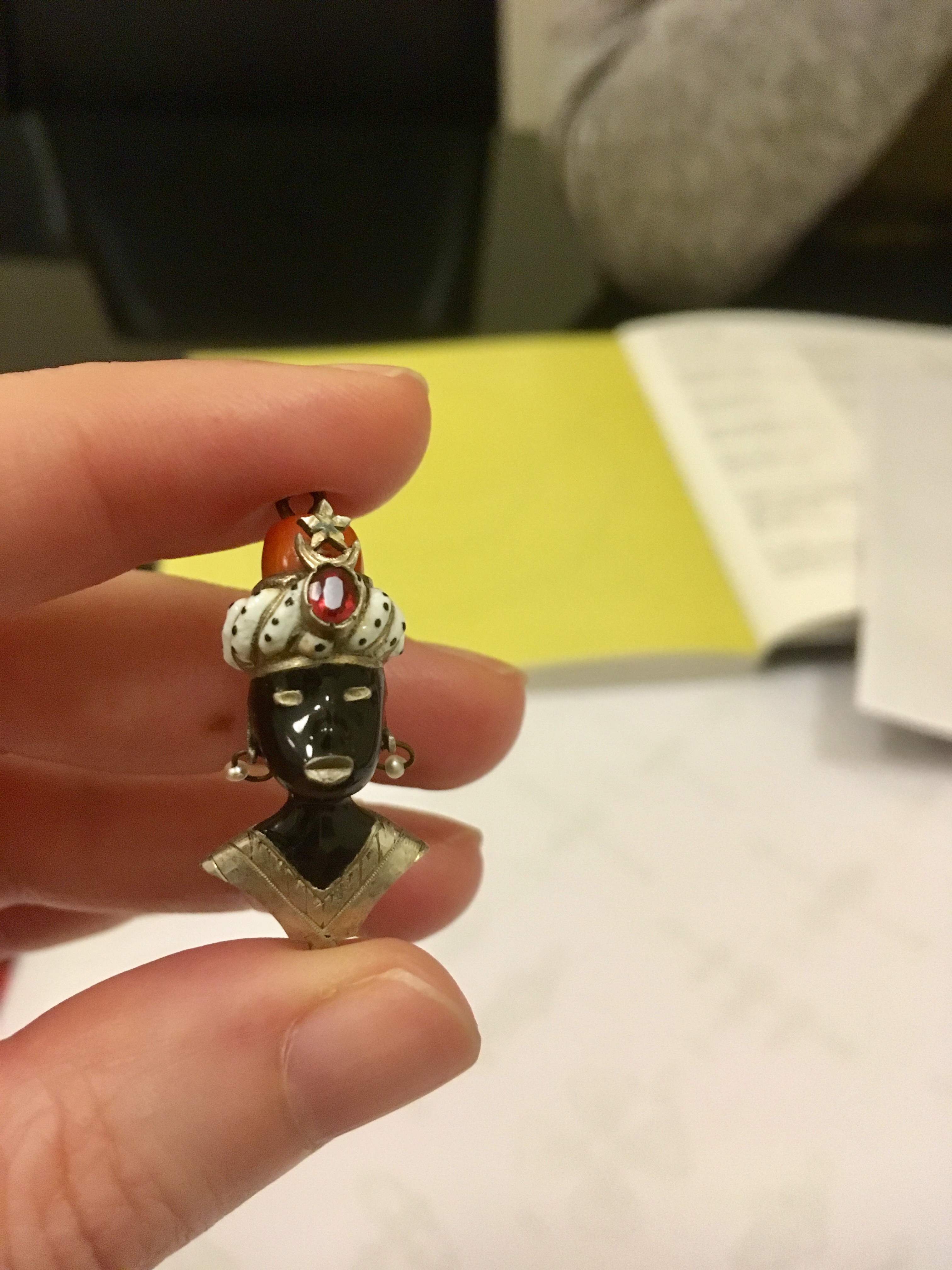 The Moretto symbol functions as an amulet, made to prevent the evil and the Other, and commonly takes the form of an earrings, made out of gold and enamel, with optional use of gemstones, worn in different manners throughout history by different classes and all genders.