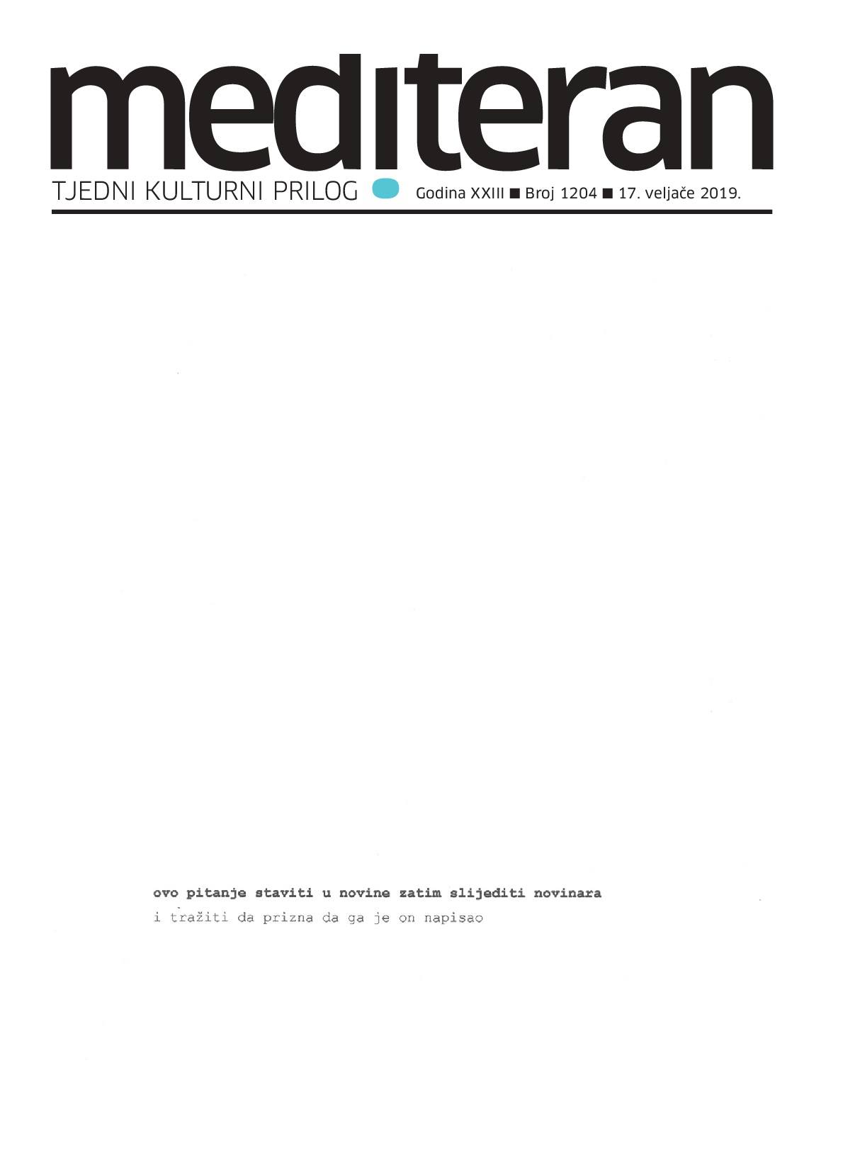 I evo ga i danas, u 27. godini izlaženja, “Mediteran” je tu kao posljednji kulturni prilog u hrvatskim tiskanim medijima. Iz toga bi se dalo zaključiti da smo uspjeli, no tih devedesetih vjerovali smo kako će cijelo društvo nakon preživljenih strahota imati potrebu za katarzom i da će ta potreba za pročišćenjem rezultirati oslobađanjem u svakom pogledu, eksplozijom novog i kreativnog u ljudima. Gledajući širu sliku iz današnje perspektive čini mi se da smo podbacili, zakazali i umjesto hrabro naprijed krenuli kukavički unazad. I vratili se, što se uljudbe tiče, gotovo do pećine, one prije Lascauxa i Altamire. Zato se nadam i s nestrpljenjem čekam da ponovno doživim osamdesete 20. stoljeća.