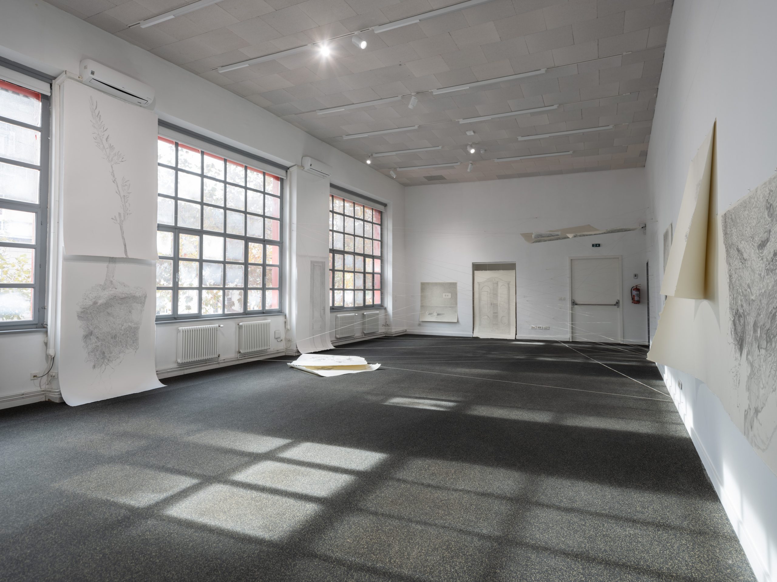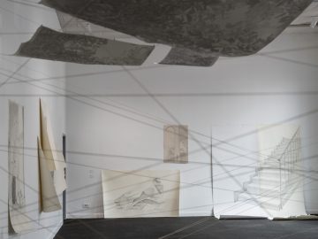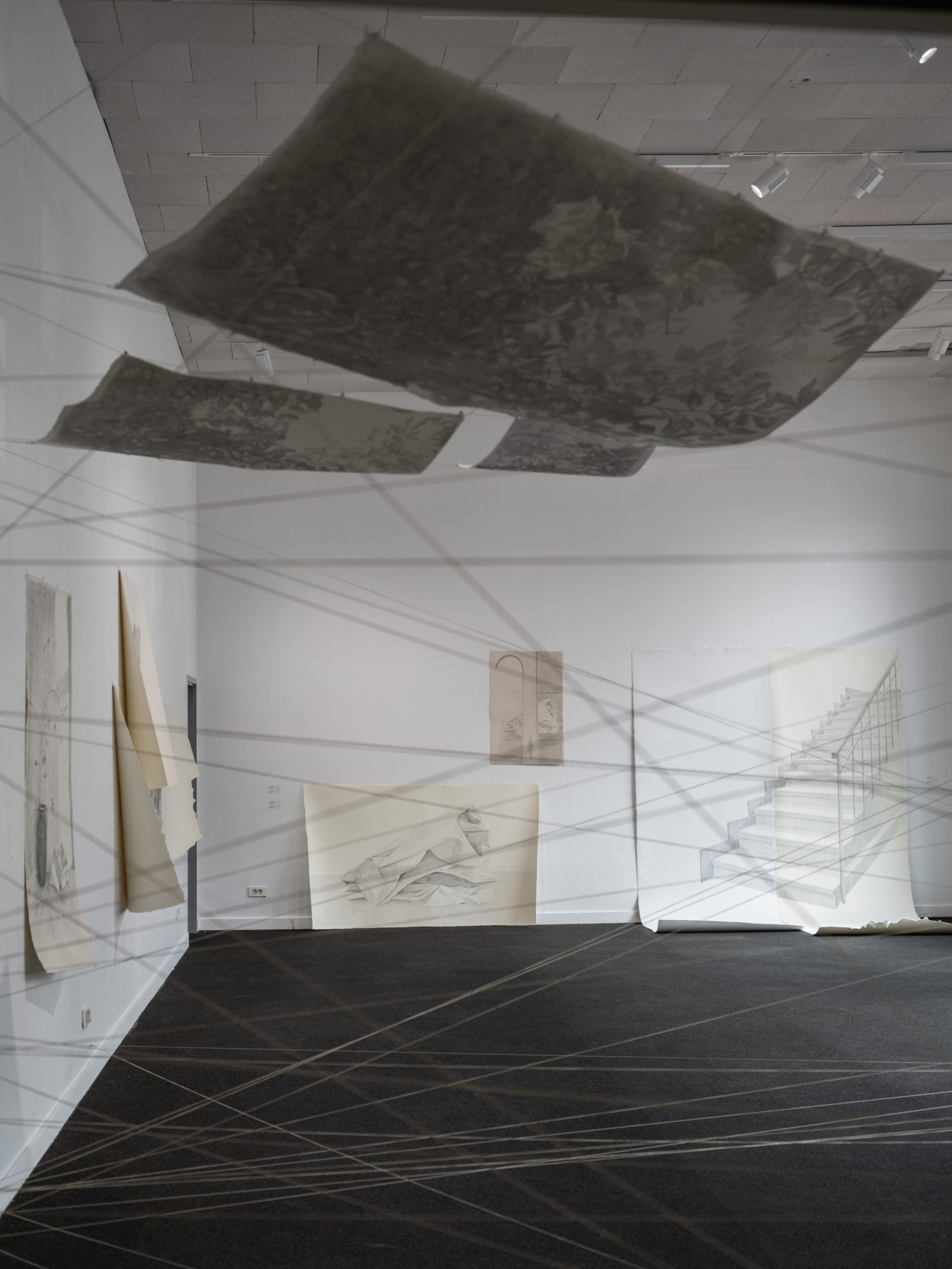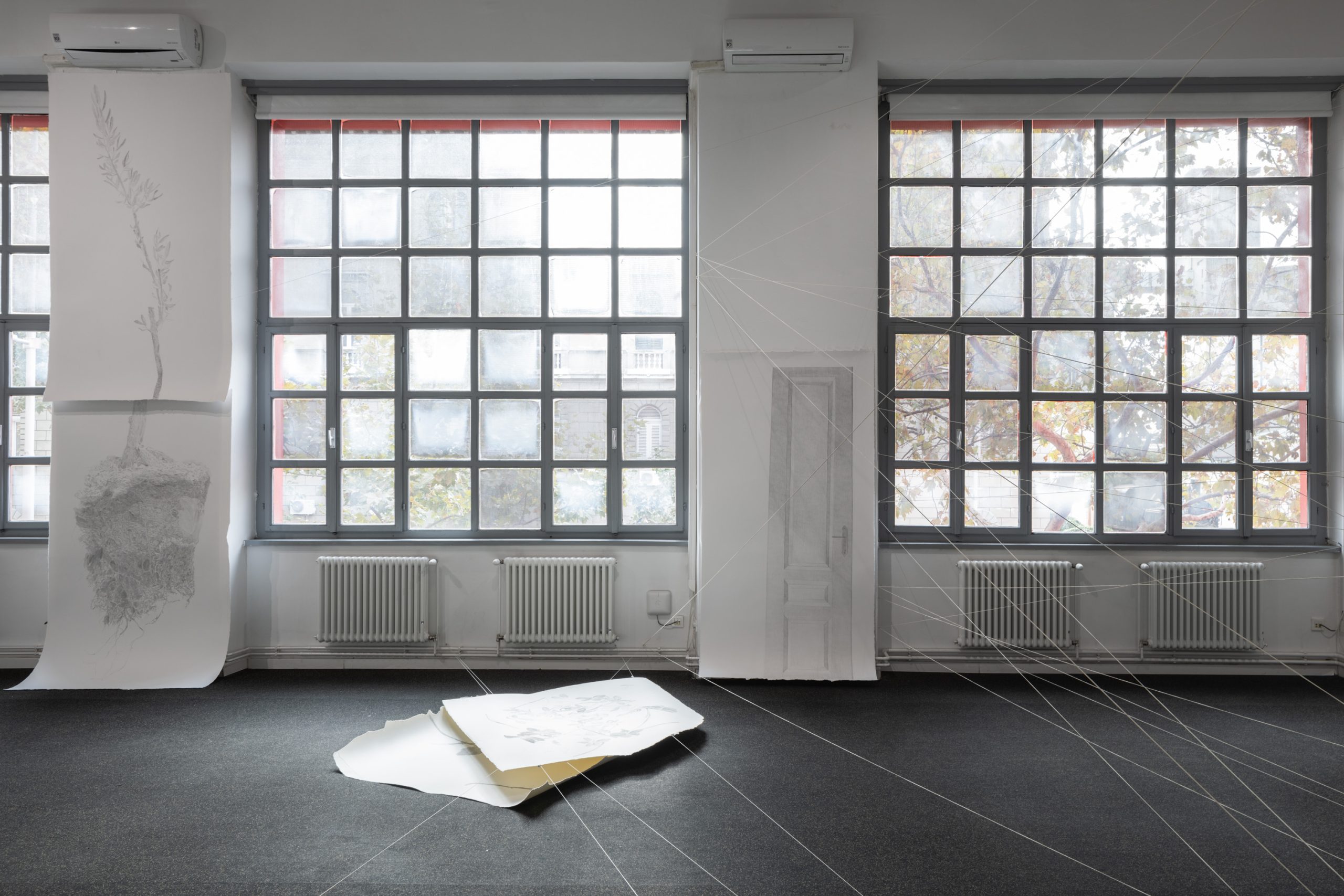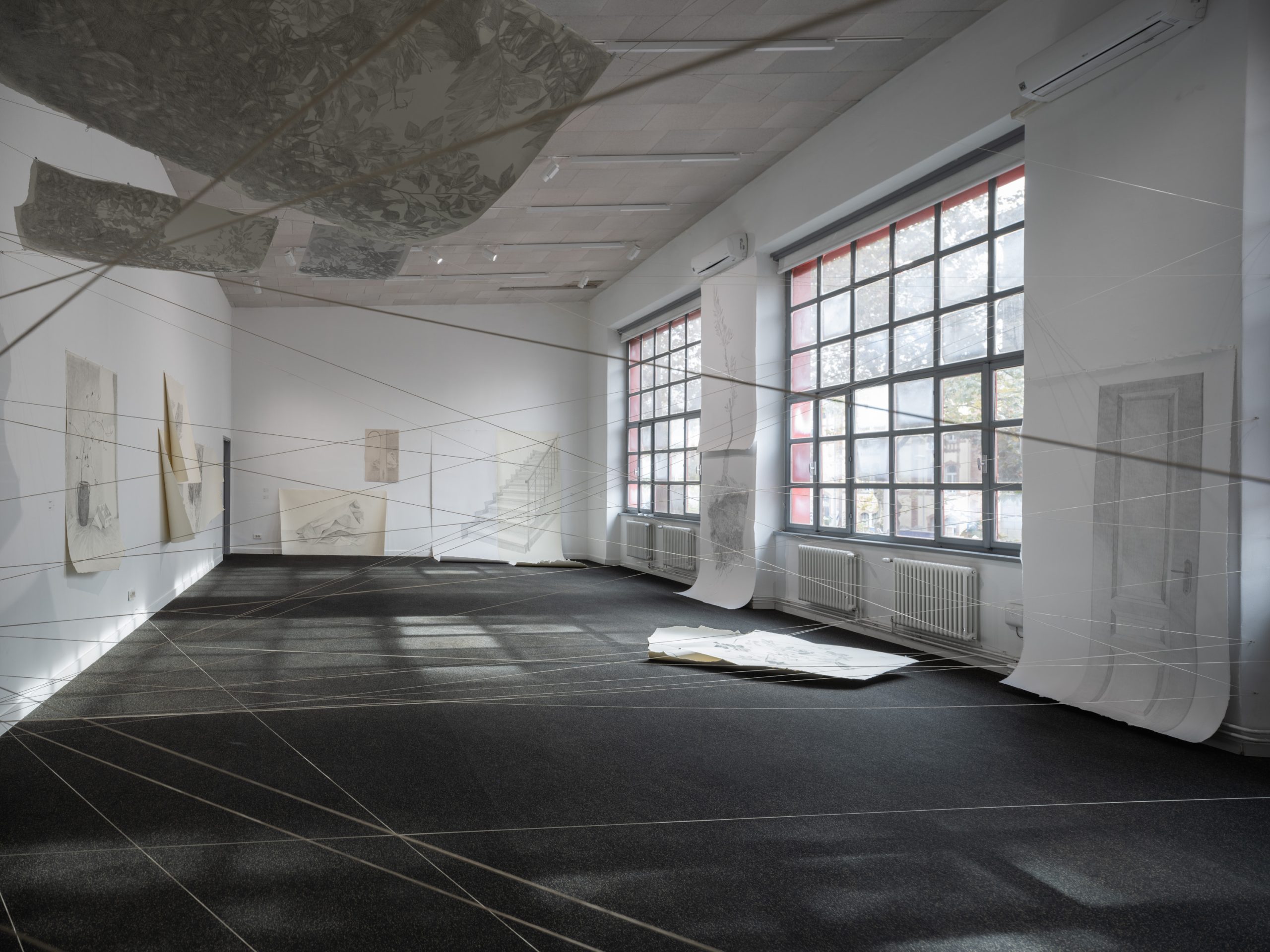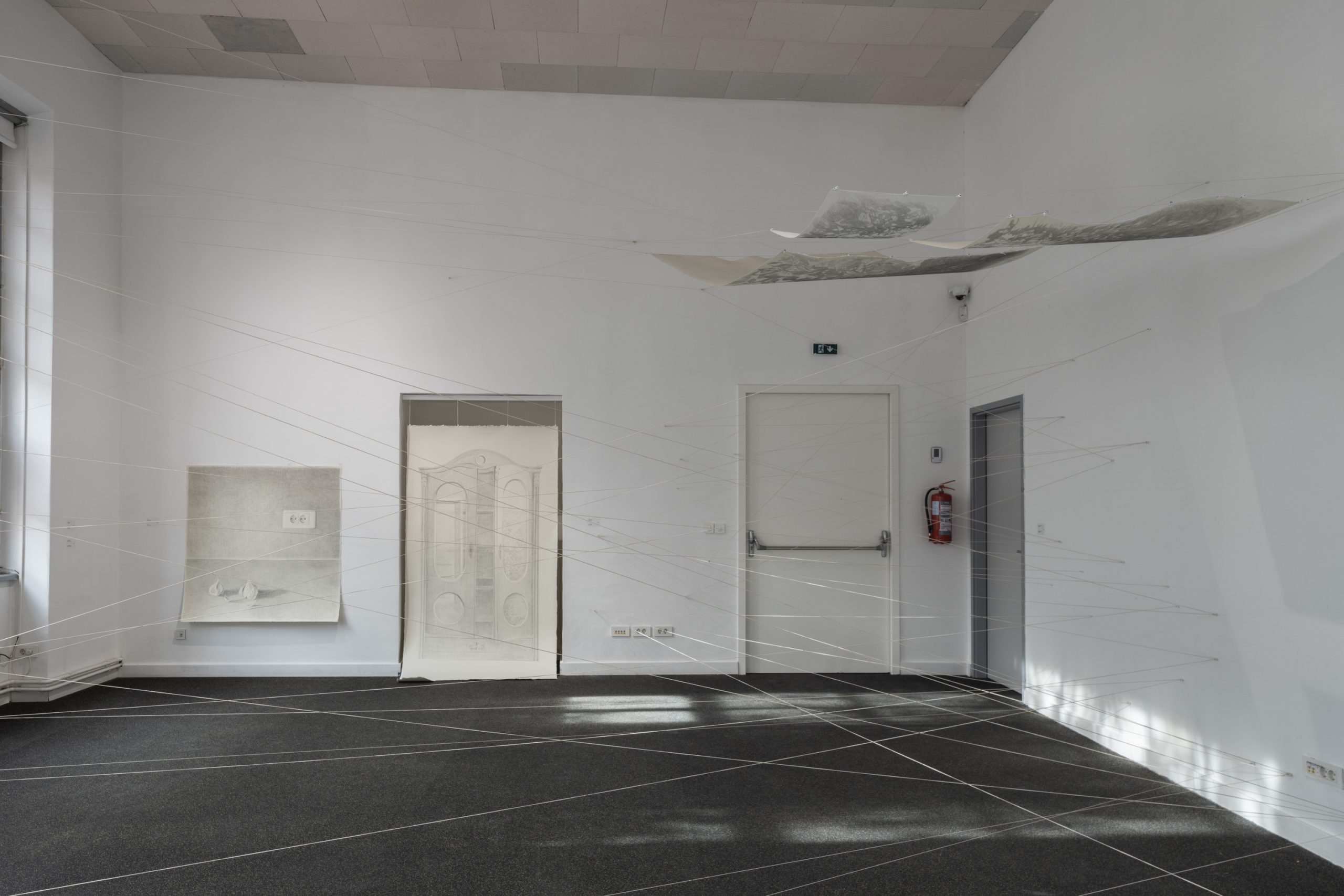 Gusto postavljene i isprepletene niti uvod su u instalaciju, a ujedno je to i prepreka koju posjetitelj treba premostiti kako bi pronašao put i približio se pojedinom crtežu.