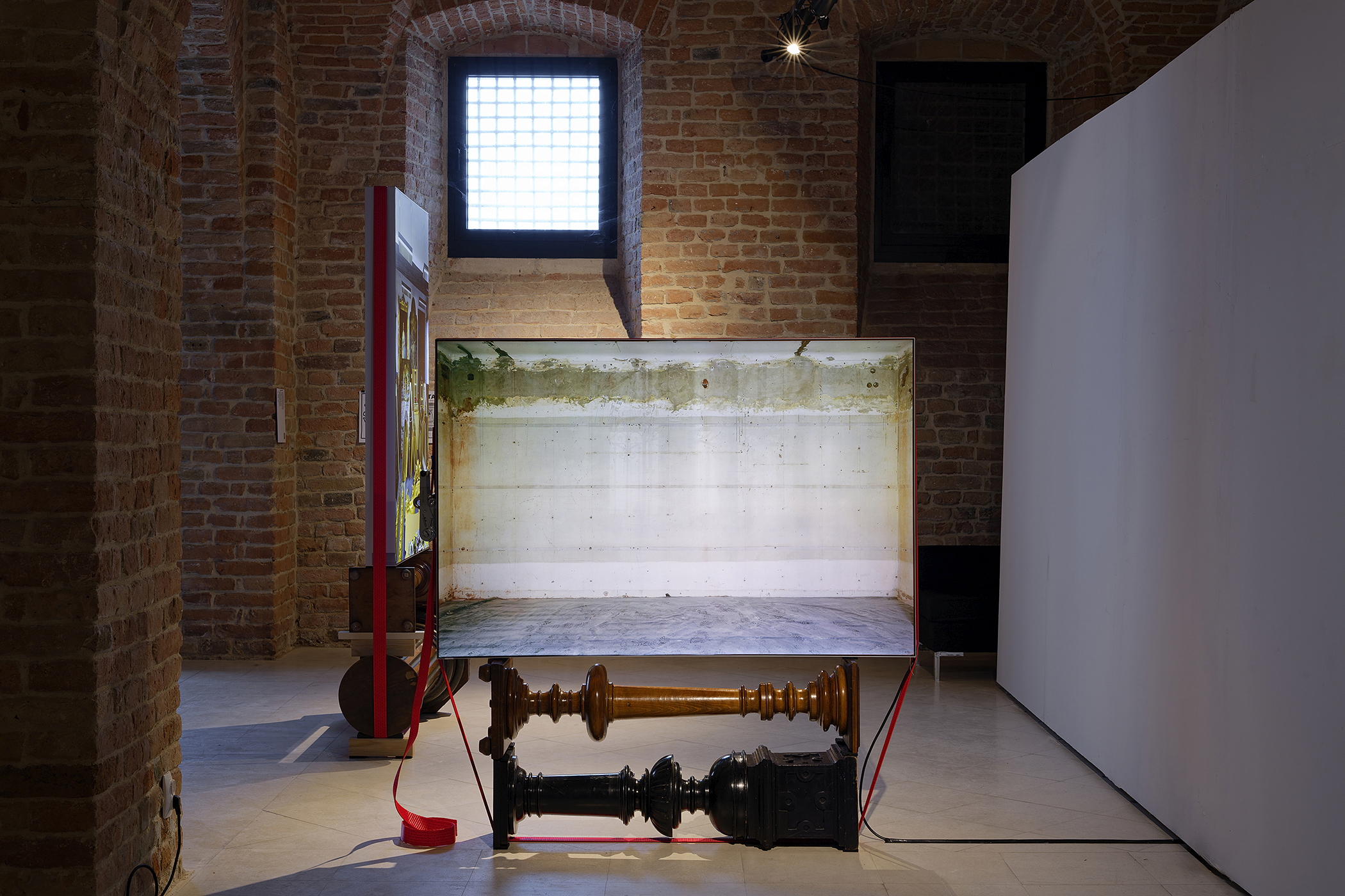 Umjesto jedinstvene narativne linije, izravnosti sadržaja i društvenog angažmana, radovi su refleksije o našoj zapetljanosti u simultane krize koje nameću oblike stvaranja, ali i potiču metode izmicanja iz uskih načina funkcioniranja. Gaia Radić evocira skulpturu kao drevno biće koje izranja iz supstrukture prostora – potoka u Benčiću. Vedran Perkov koristi tekst i svjetlo kao nesigurne oblike samopomoći na muzejskoj fasadi, gdje svaka rečenica vibrira između banalnosti i urgentnosti. Kod Igora Rufa skulpture se komešaju između odbačenog i novog prostora upotrebe, željenog i zbiljskog, a visoka kultura preobraća se u svoje svakodnevno okrilje gdje je apsurd glavna sastavnica. Sara Salamon proizvodi dodatni prostor koji se „pretvara da je dio postojećeg“ – lažnu vertikalu, prostorni glitch. Tanja Vujasinović poseže za kolekcijom Muzeja, kroz svjetlosnu skulpturu reintepretirajući misao Ivana Kožarića. „Malo duha, malo materije“ ovdje ne sadrži pojmove suprotnosti, već označava istovremene uvjete. Viktor Popović otkriva arhiv muzeja kao mehanizam zaborava – konstrukciju u kojoj svjetlost sablasno usporava pogled. U instalaciji Vlaste Žanić susrećemo se s neprekidnom petljom, kolažem osobnih bilješki, odbačenih materijala i arhivskih tragova. Instalacija postaje arhitektura nevidljivih procesa – dnevničkog zapisivanja, emocionalnog usporavanja, ponovnog pogleda. Kristian Kožul gradi tijela u rastavljanju i međusobnom nadomještanju, kao protetiku koja ne skriva ranjivost nego je ističe. U medijskom tj. skulpturalnom, individualnom, kolektivnom, ali i institucionalnom smislu, radovi sagledavaju i reinterpretiraju uspavane i odložene funkcije i uvode pitanja: što znači stajati? Koga se isključuje da bi se nešto održalo? Gdje se nalazi težina, a gdje rasterećenje?